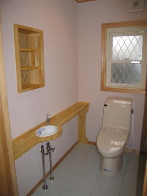 ナチュラルカラー 無垢のこだわり・・・本来の木の色・・・ナチュラルカラー 時とともに飴色へと変わっていく・・・楽しみ・・・ 誰もが「幸せを感じる時」・・・おいしい・・・時・・・ おいしい料理をいただくと誰もがおもわず「幸せの笑顔」・・・ ギャラリー リビングダイニング アクセントタイルがかわいい トイレにはオーダーメイドの手洗いカウンターをつけました